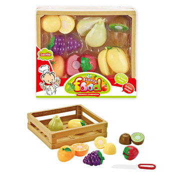 Children's Plastic Pretend Kitchen & Food Play Set Includes Cutting Fruit with Storage Basket